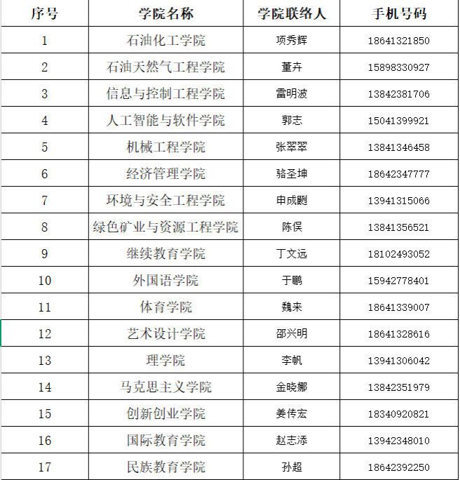 各学院负责校友接待工作人员名单